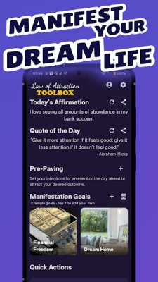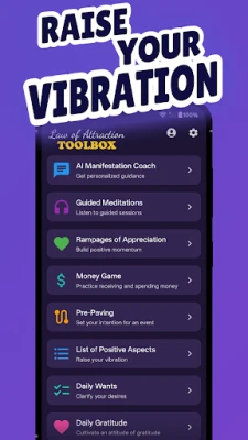 The Law of Attraction Toolbox is more than an app - it's a partner in your transformation. By focusing on the powerful combination of clear intention and elevated emotion, you'll learn to:
