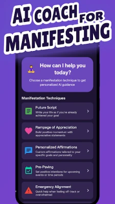 Master the Law of Attraction and manifest the life of your dreams with your personal AI Coach and your own manifestation toolbox. Attract love, wealth, and success with daily affirmations, gratitude journaling, guided meditations, and more.