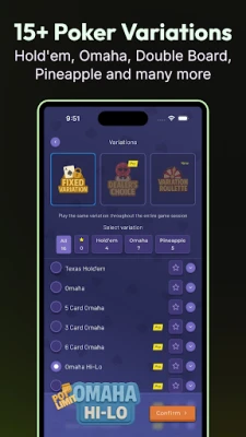 Choose from popular classics like Texas Hold’em and Omaha Hi-Lo, to exotic picks like Pineapple, Courchevel, Short Deck, and the oddly addictive Watermelon. There's a poker variant here for every taste (and level of poker madness).